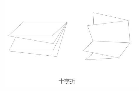 十字折其實并不是很常見,一般是一些有這種要求的企業(yè)才會選擇這種折頁的方式。這種折是先左右對折,再垂直對折,這樣在我們展開折頁的時候就會看到一個十字形狀的折線。