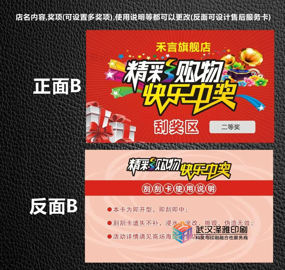 如果您的刮刮卡圖片是我們公司設(shè)計(jì)的,則清楚地描述刮刮卡的材料,尺寸,圓角/直角和整體樣式。希望您理解的是,解釋越清楚,您越能達(dá)到預(yù)期的效果。因?yàn)槊總€(gè)設(shè)計(jì)師都是個(gè)人,并且都有自己的美感,所以設(shè)計(jì)師對(duì)效果的理解和描述似乎不一致。對(duì)整個(gè)刮刮卡設(shè)計(jì)和后續(xù)打印進(jìn)行更多的交流和了解非常有益。